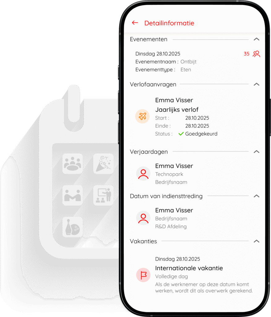 Met de Idenfit bedrijfskalender kunnen teamleden dagelijkse en wekelijkse plannen op hetzelfde platform bekijken, waardoor gestroomlijnde en samenwerkende planning mogelijk is. Dit helpt communicatieproblemen en overlappende evenementen te voorkomen.