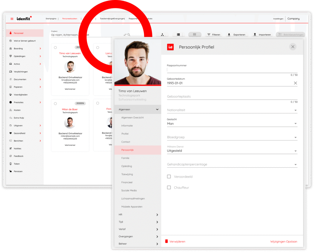 Idenfit stelt gebruikers in staat om alle medewerkersgegevens te beheren in één HR-database die communiceert met alle andere modules van de software, zodat gebruikers medewerkersrecords in een oogwenk kunnen invoeren, bijwerken en controleren zonder steeds dezelfde problemen tegen te komen.