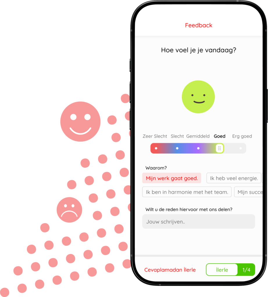 Het is essentieel om van tijd tot tijd geïnformeerd te worden over de gemoedstoestand van medewerkers of teams door gebruik te maken van de feedbackfunctie voor het aanbrengen van teamverbeteringen, het creëren van synergie of simpelweg het plannen van teambuilding evenementen om een gelukkigere werkomgeving en bedrijfsresultaten te bereiken.