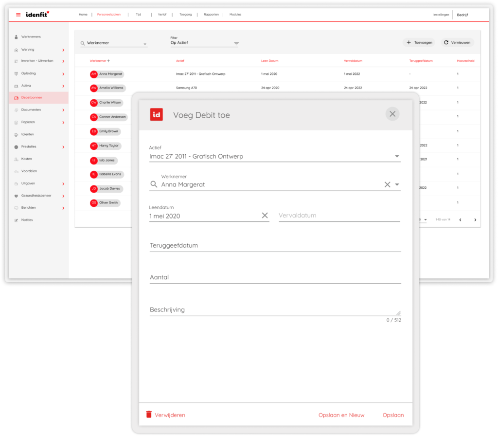 Het is vooral moeilijk om bij grote bedrijven bij te houden wie welke activa heeft. Idenfit biedt de mogelijkheid om dit proces vanuit één paneel te beheren.