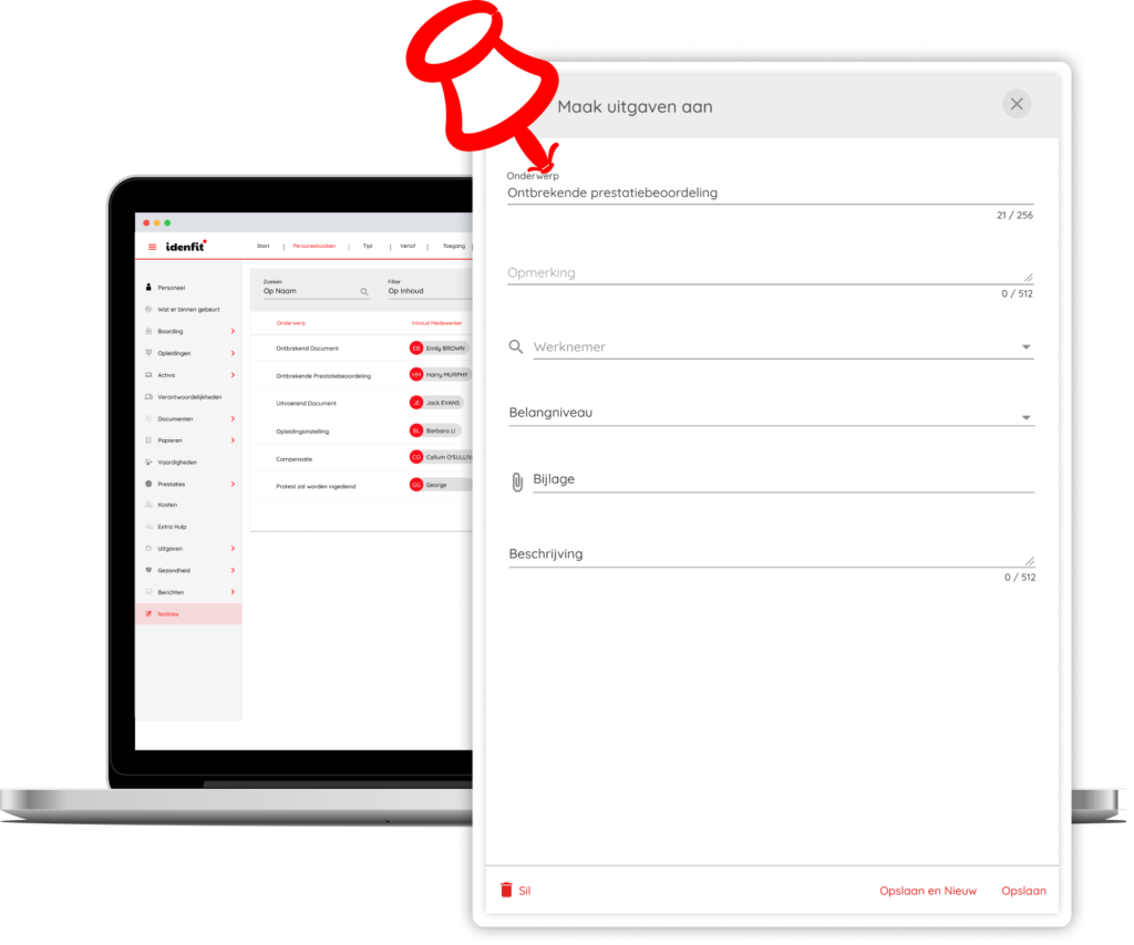 U raakt niet verloren tussen papier en stickers gemengd met de Idenfit notulenmodule. U kunt uw notities op hetzelfde platform houden met de Idenfit-software, waar u alle operaties van personeelsbeheer kunt uitvoeren, u kunt een notitie invoeren op basis van de relevante persoon en documenten toevoegen.