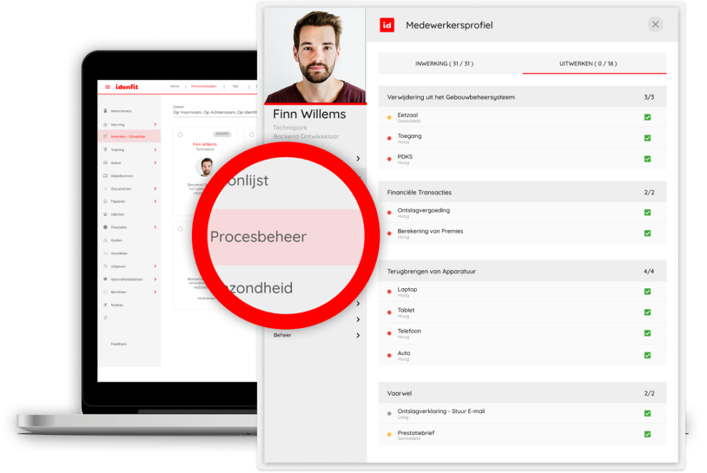 De offboardingmodule van Idenfit helpt je het vertrekproces van werknemers stap voor stap te beheren, zodat het soepel, voorspelbaar en met minimale stress voor zowel de werknemer als het bedrijf verloopt.