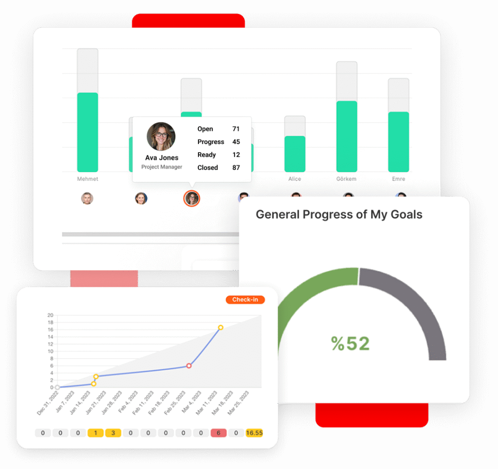 De werkdruk van werknemers, de voortgang van teams en de afstemming op strategische doelen worden duidelijk en in realtime gevolgd.