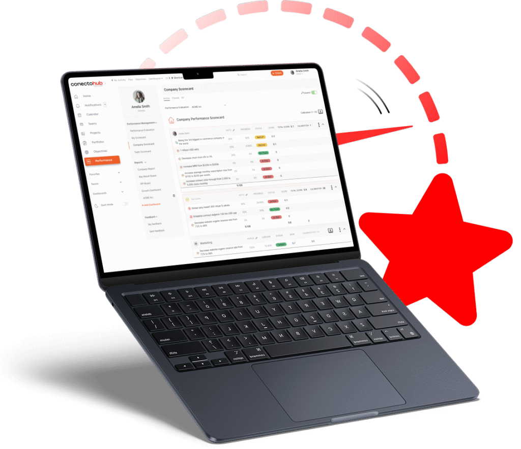 With idenfit’s Performance Management Module ConectoHub, goals, KPIs, and OKRs are directly linked to projects and daily tasks.
