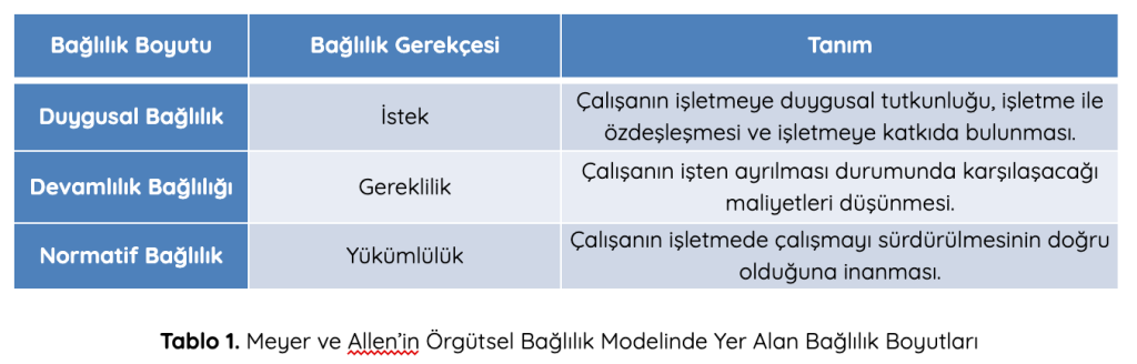 Meyer ve Allen’in Üç Boyutlu Örgütsel Bağlılık Modeli